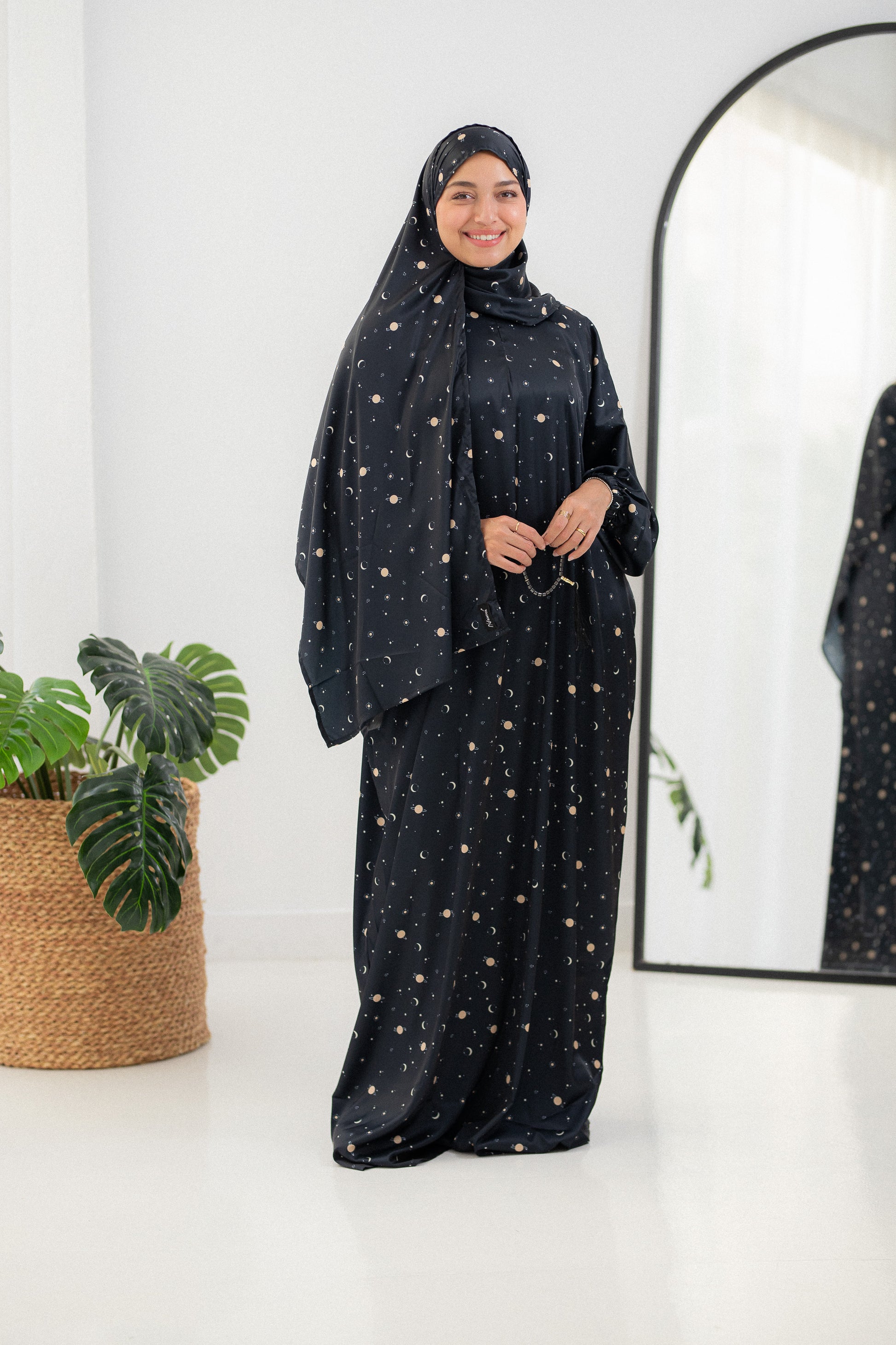 Moon phase Prayer Dress features premium satin construction that delivers exceptional softness and comfort throughout your prayer practice. This elegantly designed garment combines understated sophistication with practical functionality, creating an ideal foundation for meaningful spiritual moments.